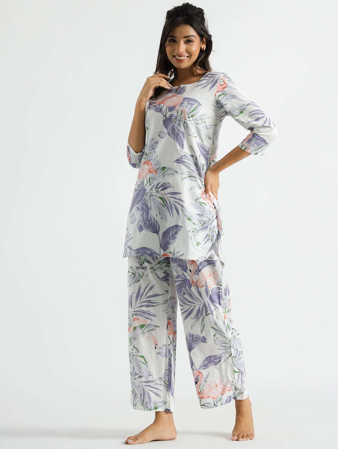- » women printed three quarter sleeve co-ord set