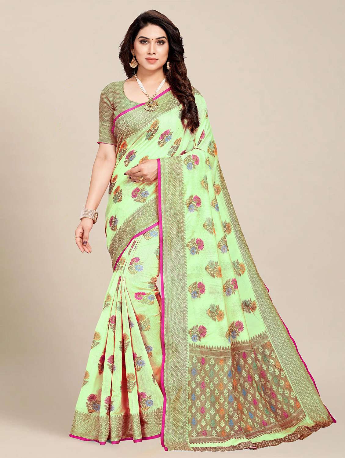 - » women's floral light green colored saree with blouse