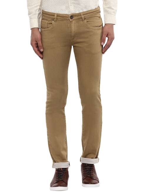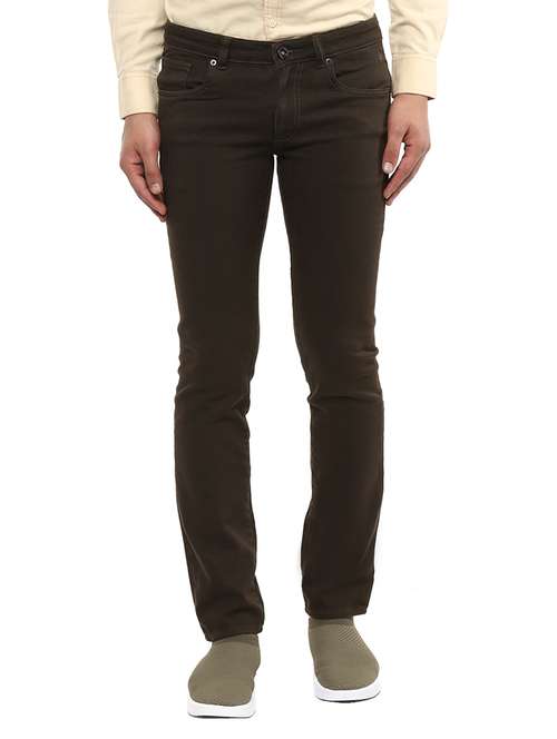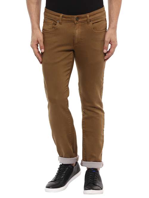 Exuding effortless style, these olive jeans from Mufti will be an evergreen addition to your casual wardrobe. With the ultimate streamlined fit, these jeans features classic-5 pocket styling, button closure and a zip fly. These denims will look opulent with a plain shirt and leather shoes.