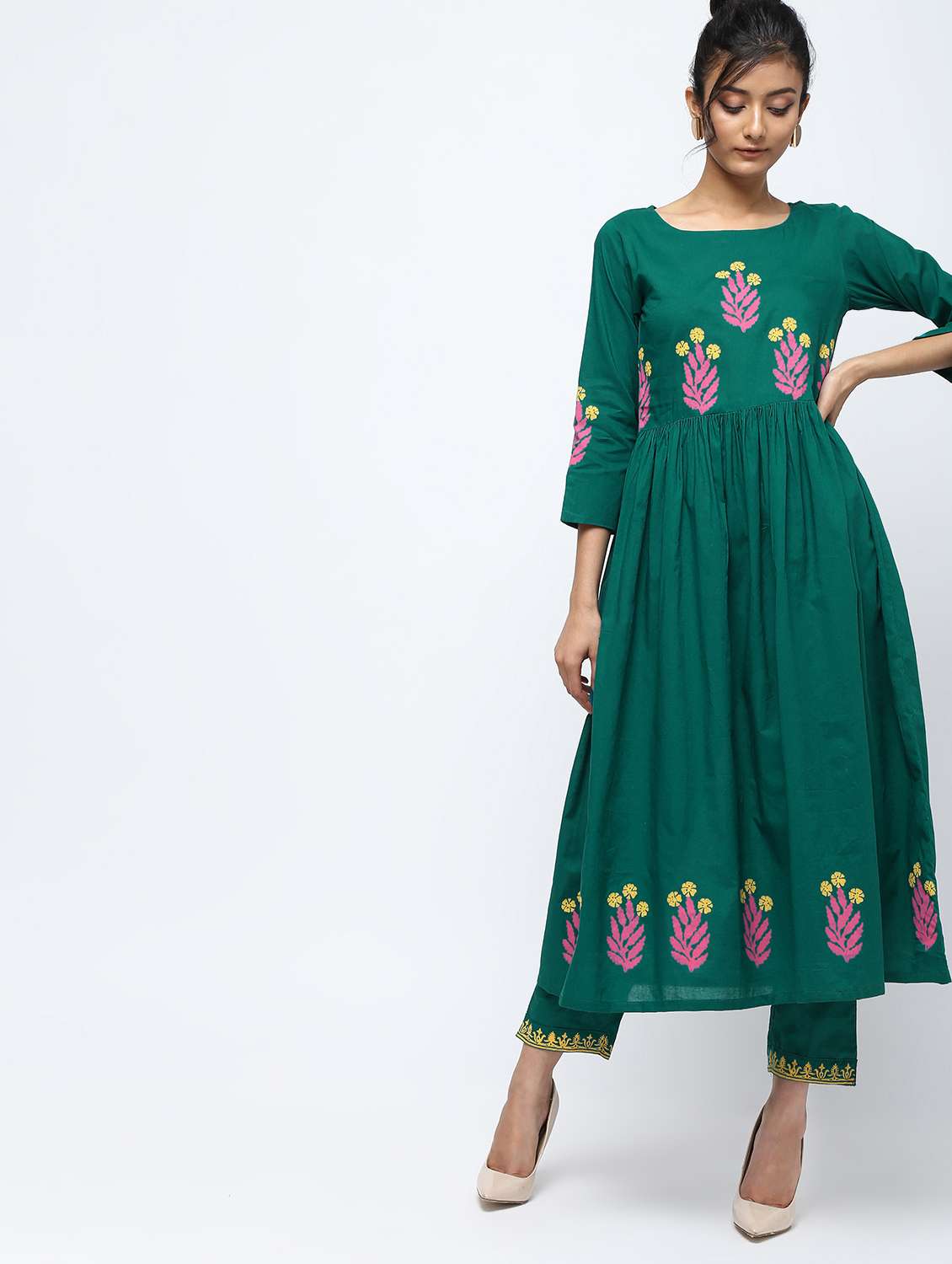 - » block print flared kurta