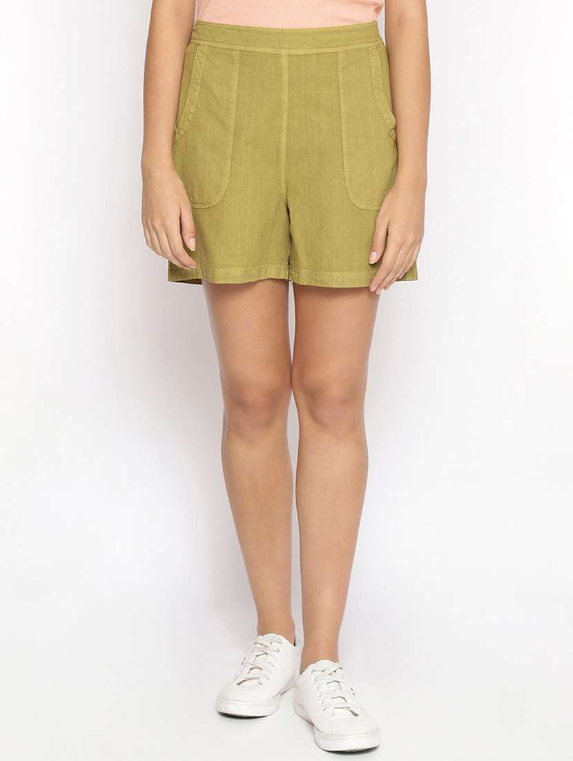 - » green cotton tailored shorts