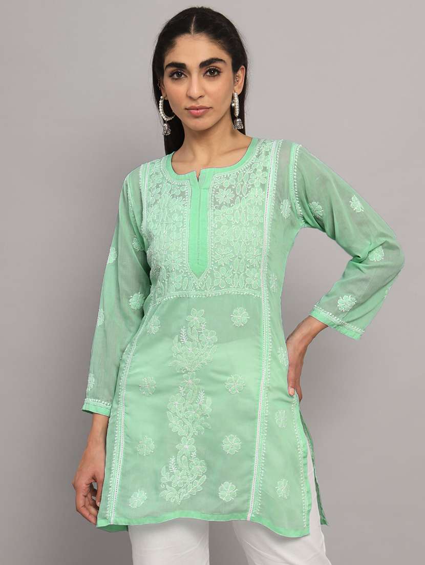 - » neon chikankari embroidered short kurti