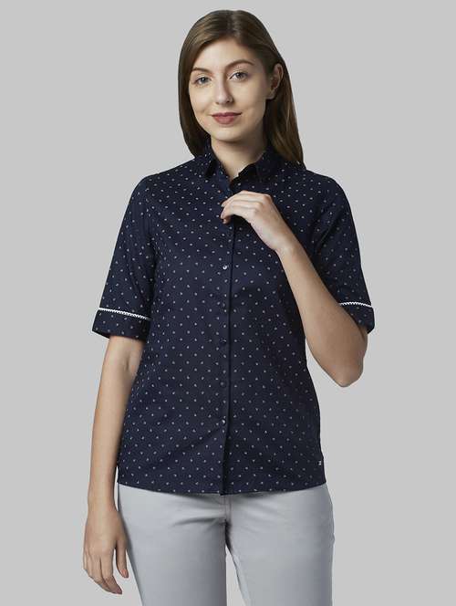 - » navy blue printed shirt