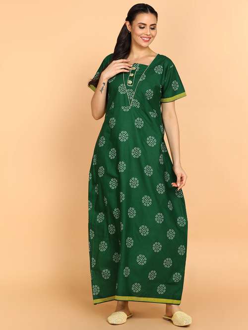 women green printed cotton nighty  - 21129917 - Very Small Image - 1