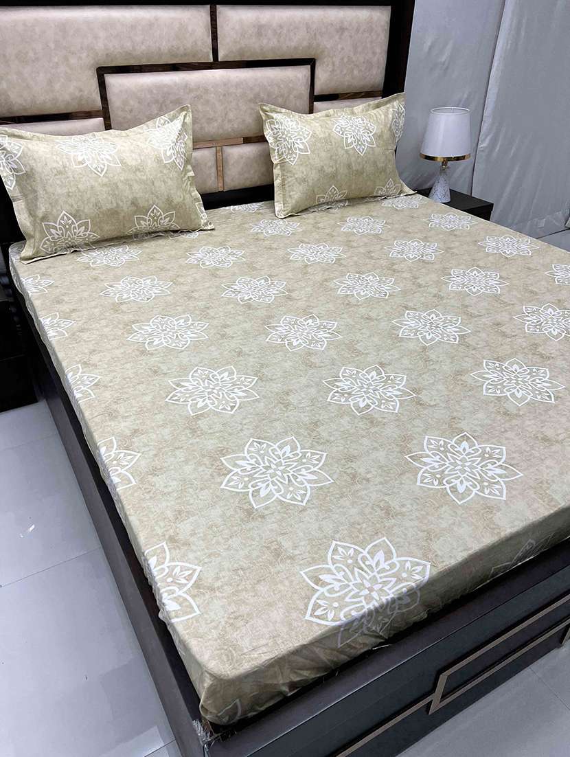 printed tc fitted king-sized bedsheet with 2 pillow covers