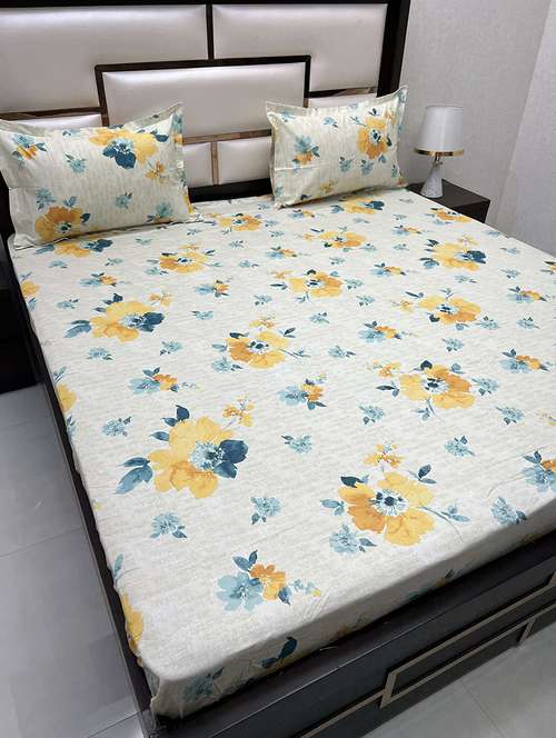- » printed tc fitted king-sized bedsheet with elastic and 2 pillow covers
