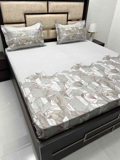 printed tc fitted king-sized bedsheet with 2 pillow covers