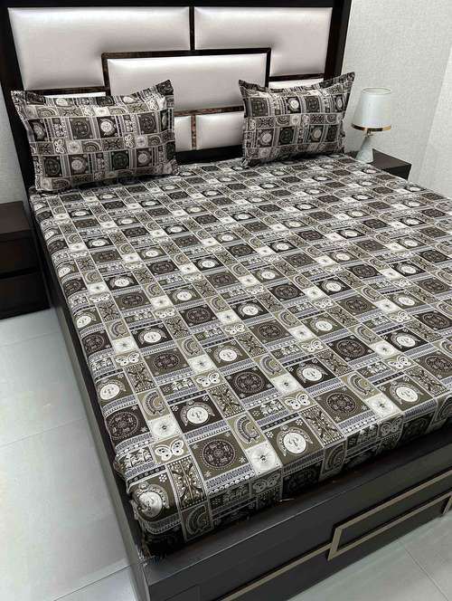 printed tc fitted king-sized bedsheet with 2 pillow covers