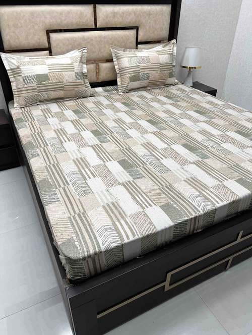 printed tc fitted king-sized bedsheet with 2 pillow covers