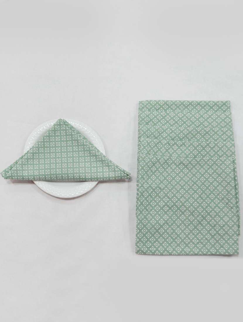 - Complete your dinner table set up with green napkin sets. Made from premium cotton material, these napkins are highly sustainable.
