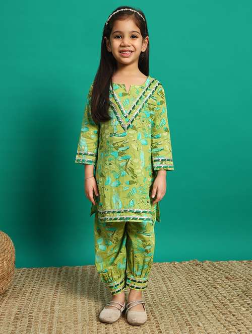girls printed notch neck kurta salwar set