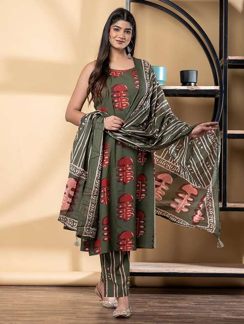 - Find gorgeous sets of ethnic wears in trending designs in green colors suitable for casual wear of occasions.