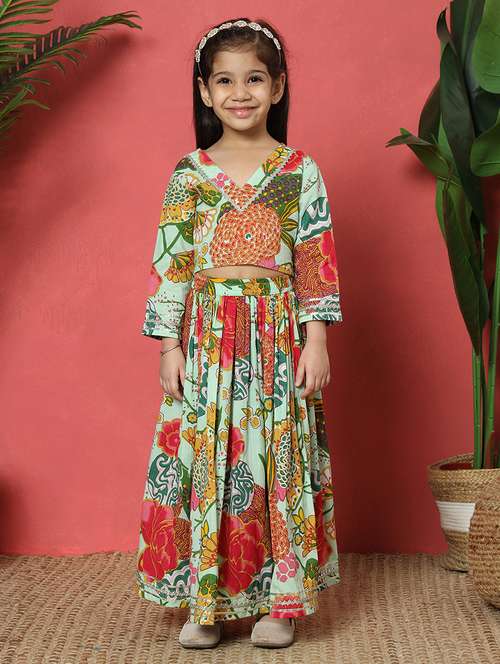 - » girls printed v-neck lehenga and choli solid