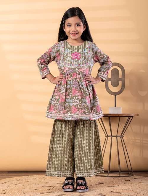 - » girls printed long sleeve kurta and sharara set