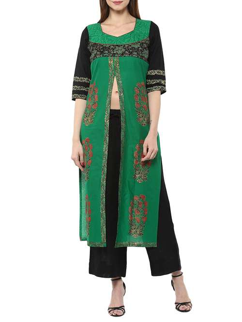 green cotton straight kurta
