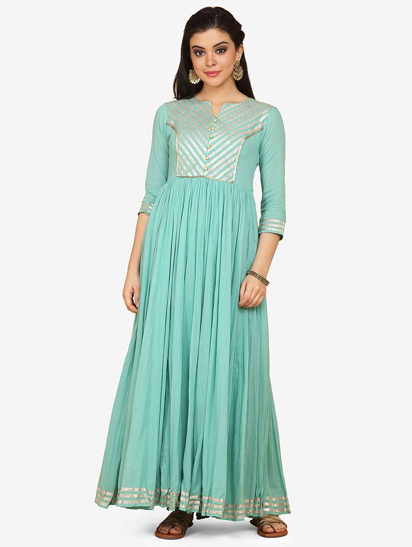 sea green cotton flared gown