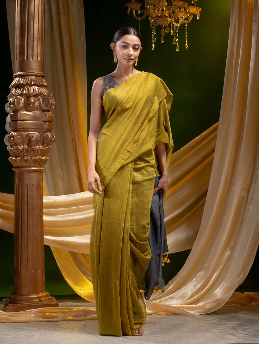 women's self design mustard colored saree with blouse