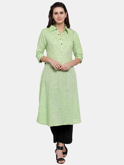 - Grab this beautiful kurta made up of cotton fabric featuring shirt collar neck designs.