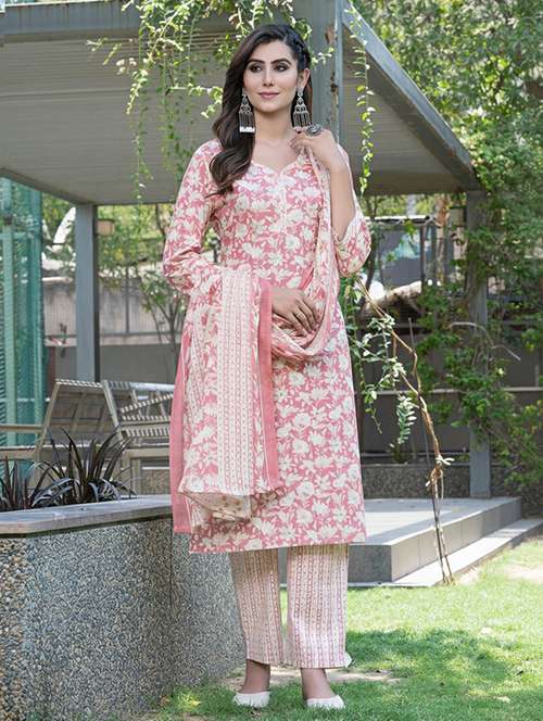 - » women printed three quarter sleeve kurta pant with dupatta set