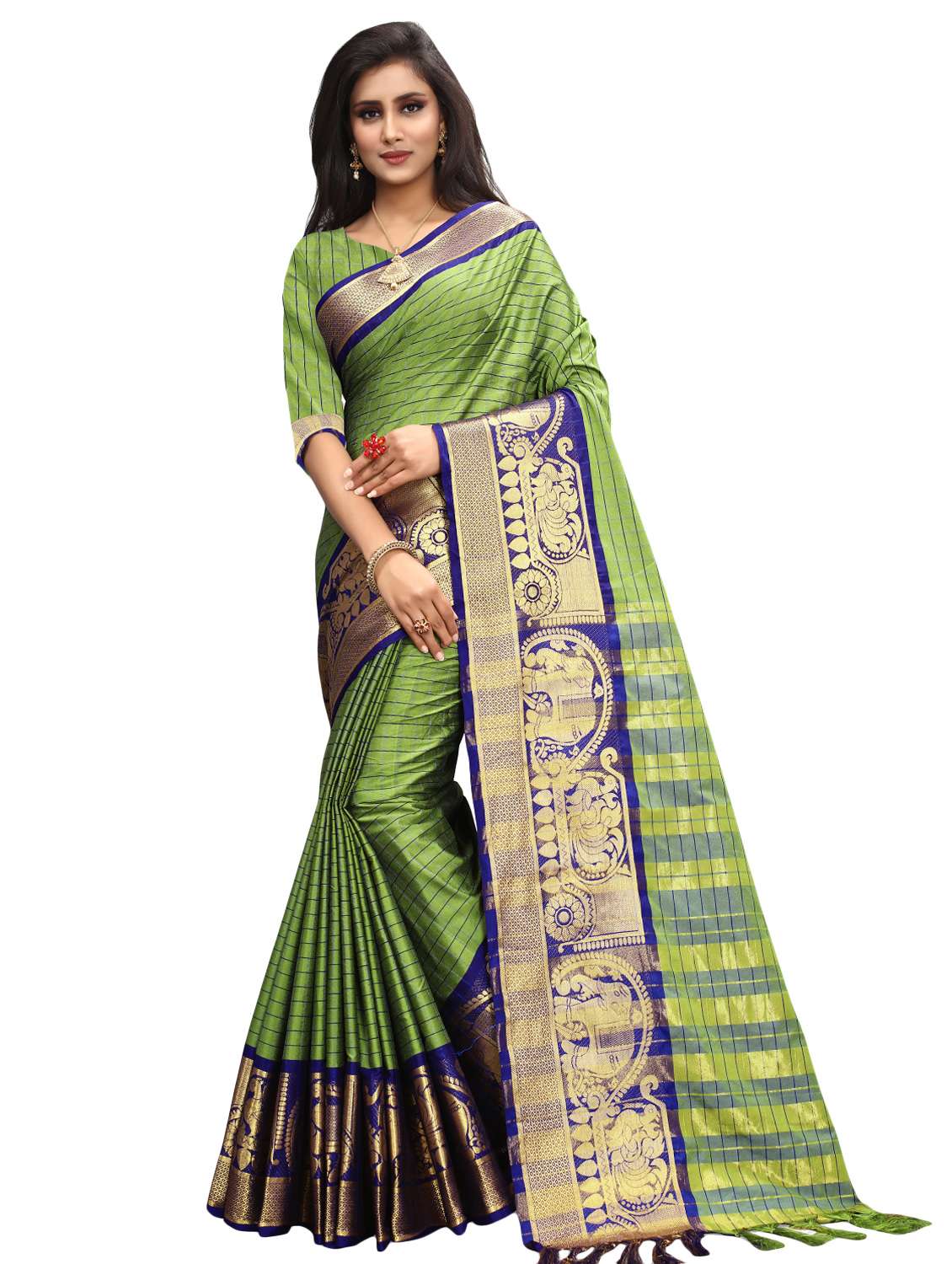 women's self design olive colored saree with blouse - 16860295 -  Standard Image - 1 women's self design olive colored saree with blouse - 16860295 -  Zoom Image - 1