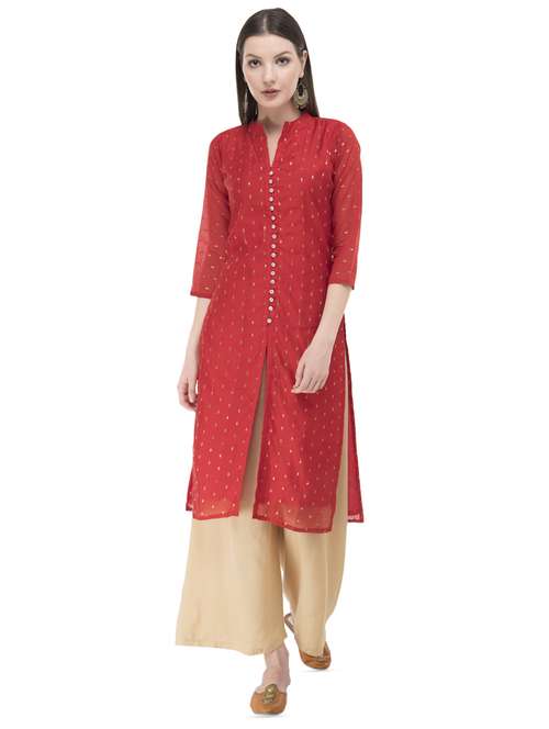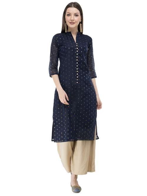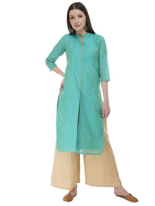 - Grab this beautiful kurta made up of cotton fabric featuring mandarin collar neck designs.