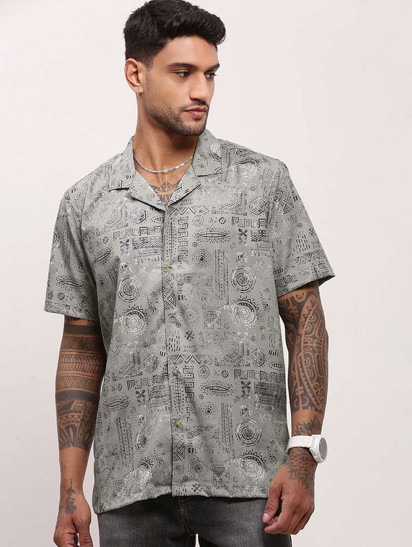 - » men geometric printed short sleeves casual shirt