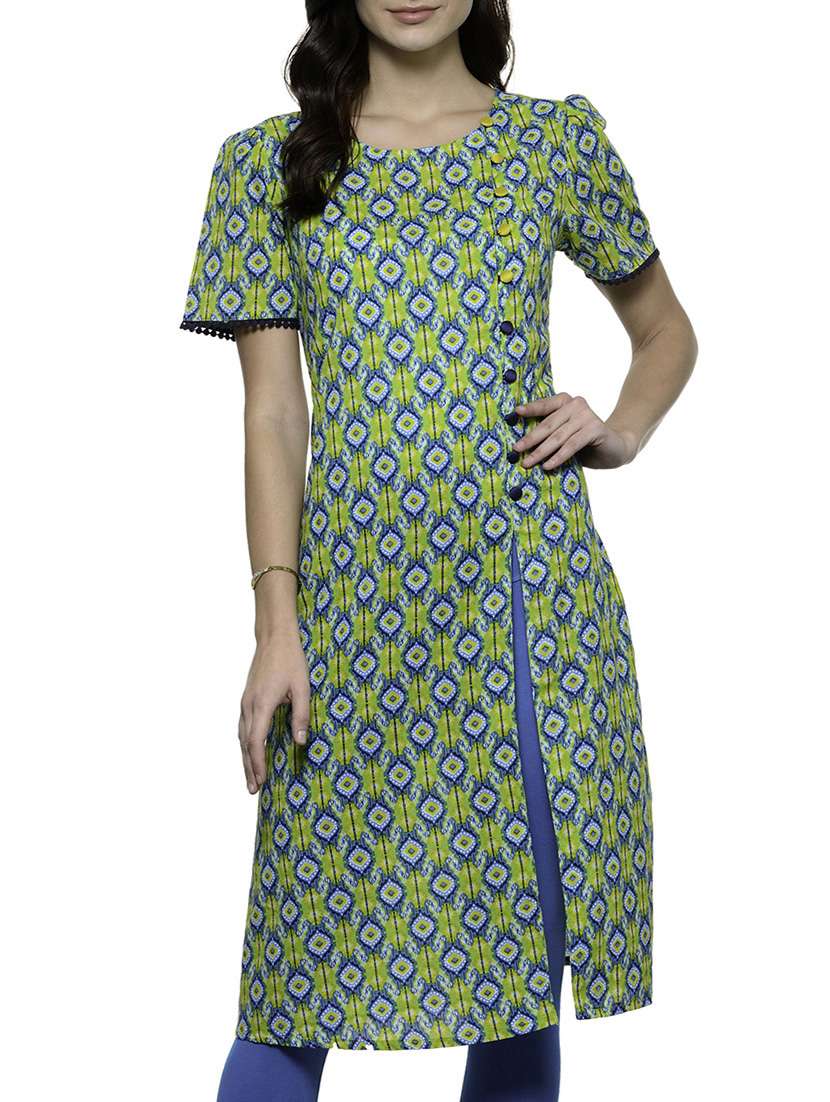 - » green cotton high slit kurta