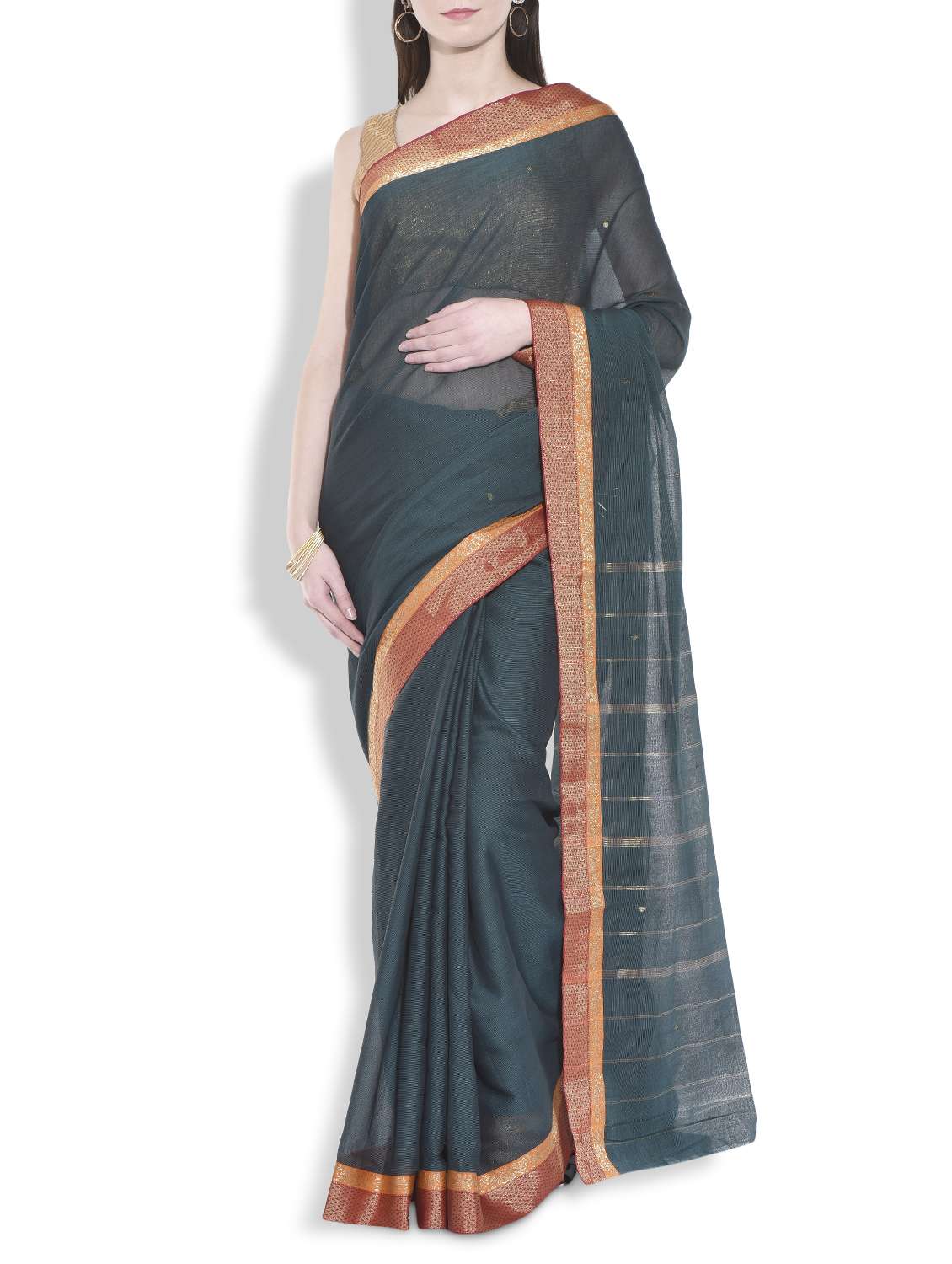 - » teal cotton silk saree with brocade border