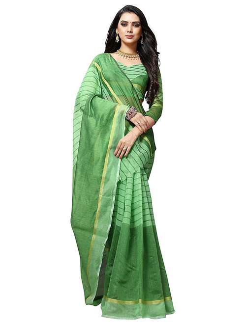 - » women's stripes light green colored saree with blouse
