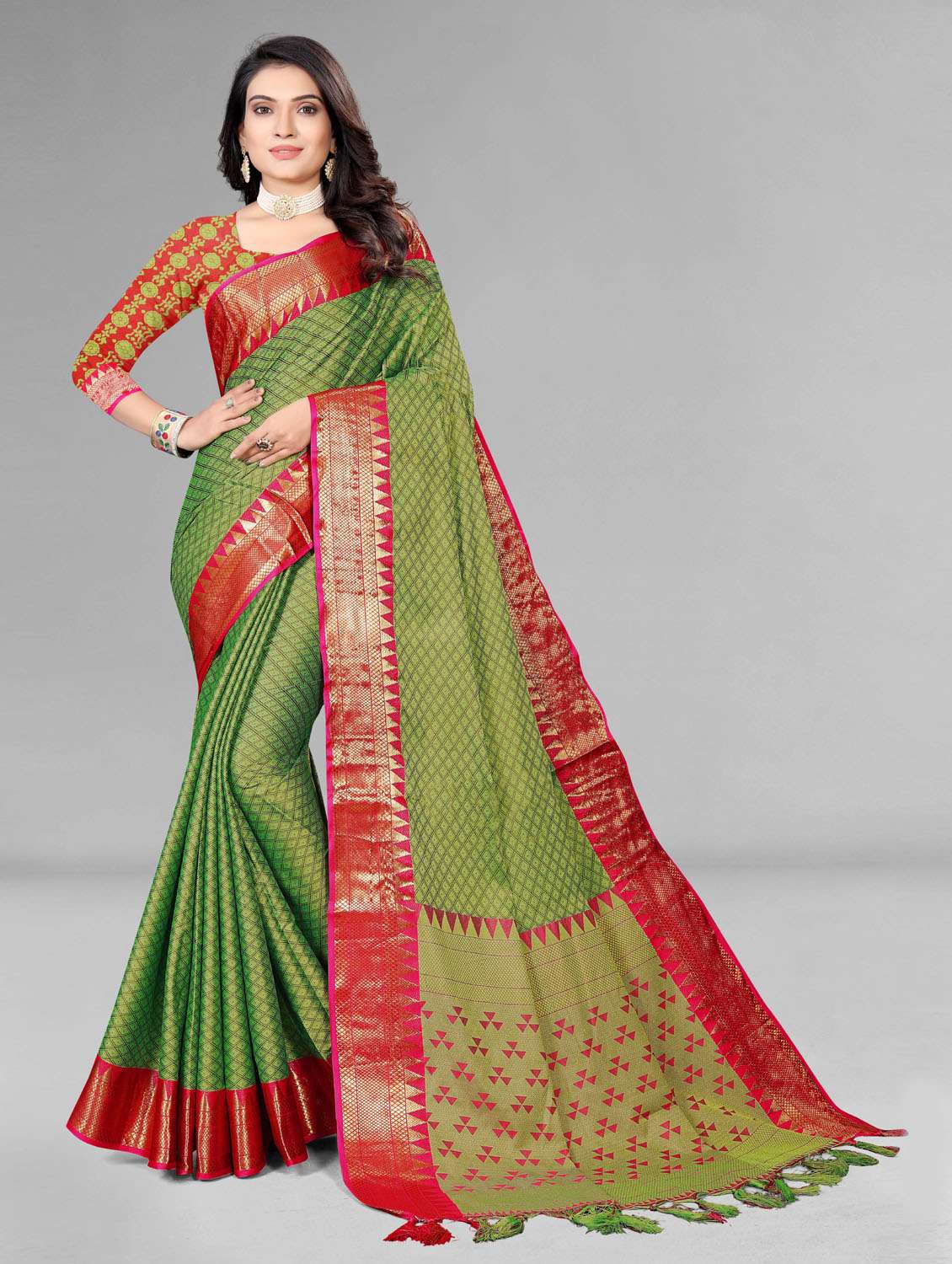 women's bordered royal blue colored saree with blouse
