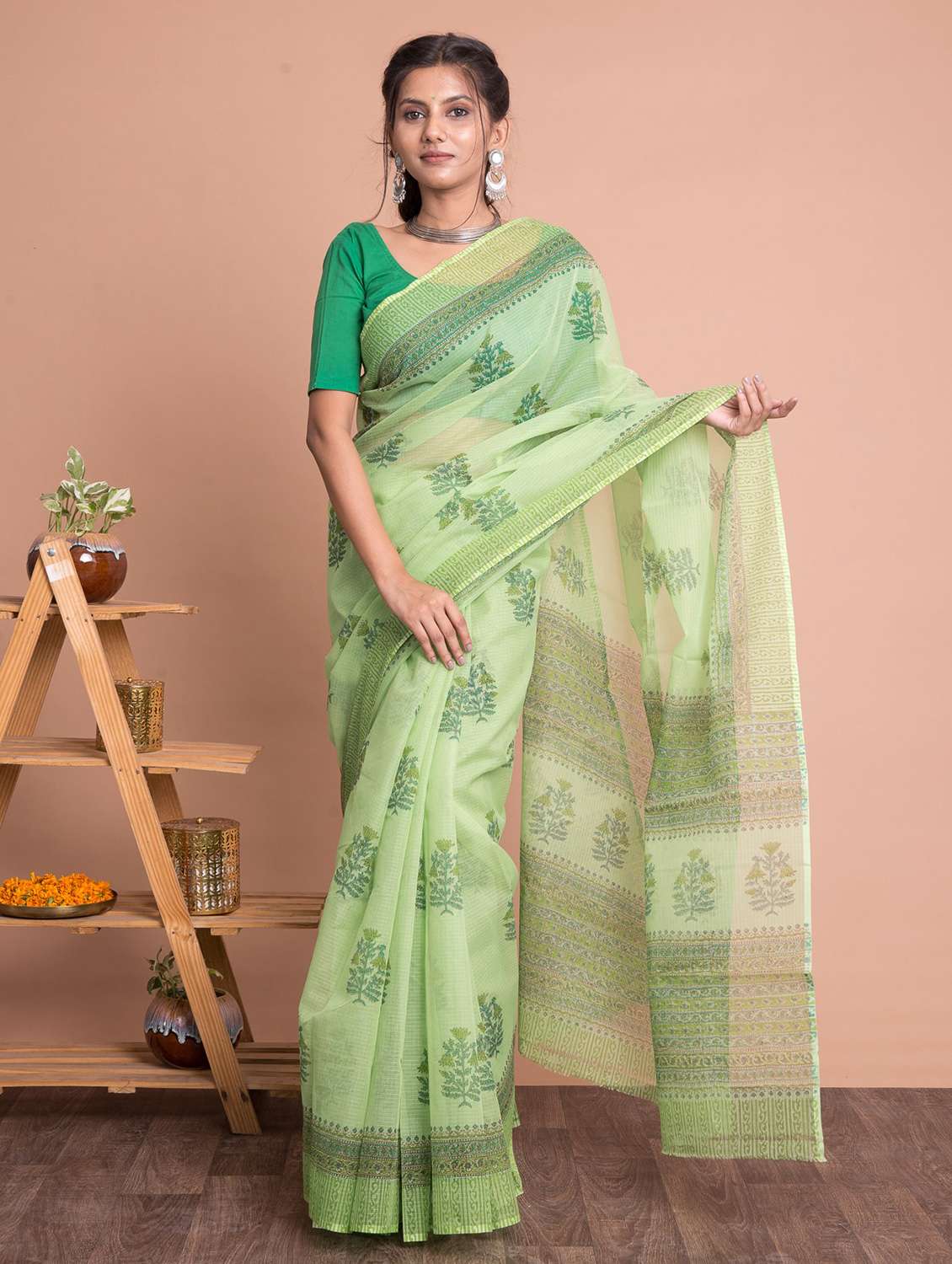 - » hand block printed saree with blouse