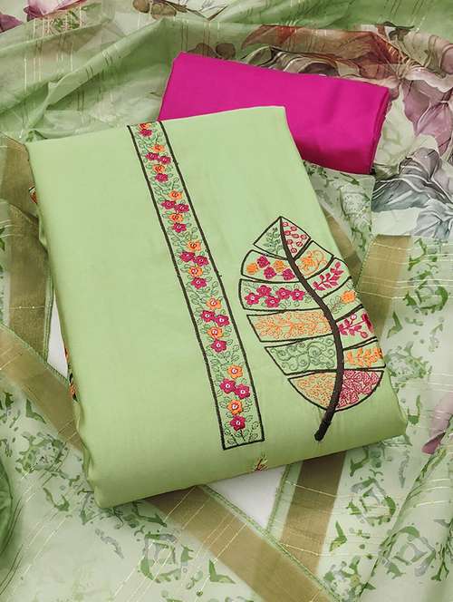 women solid with work embroidered unstitched suit set - 22224651 - Very Small Image - 1