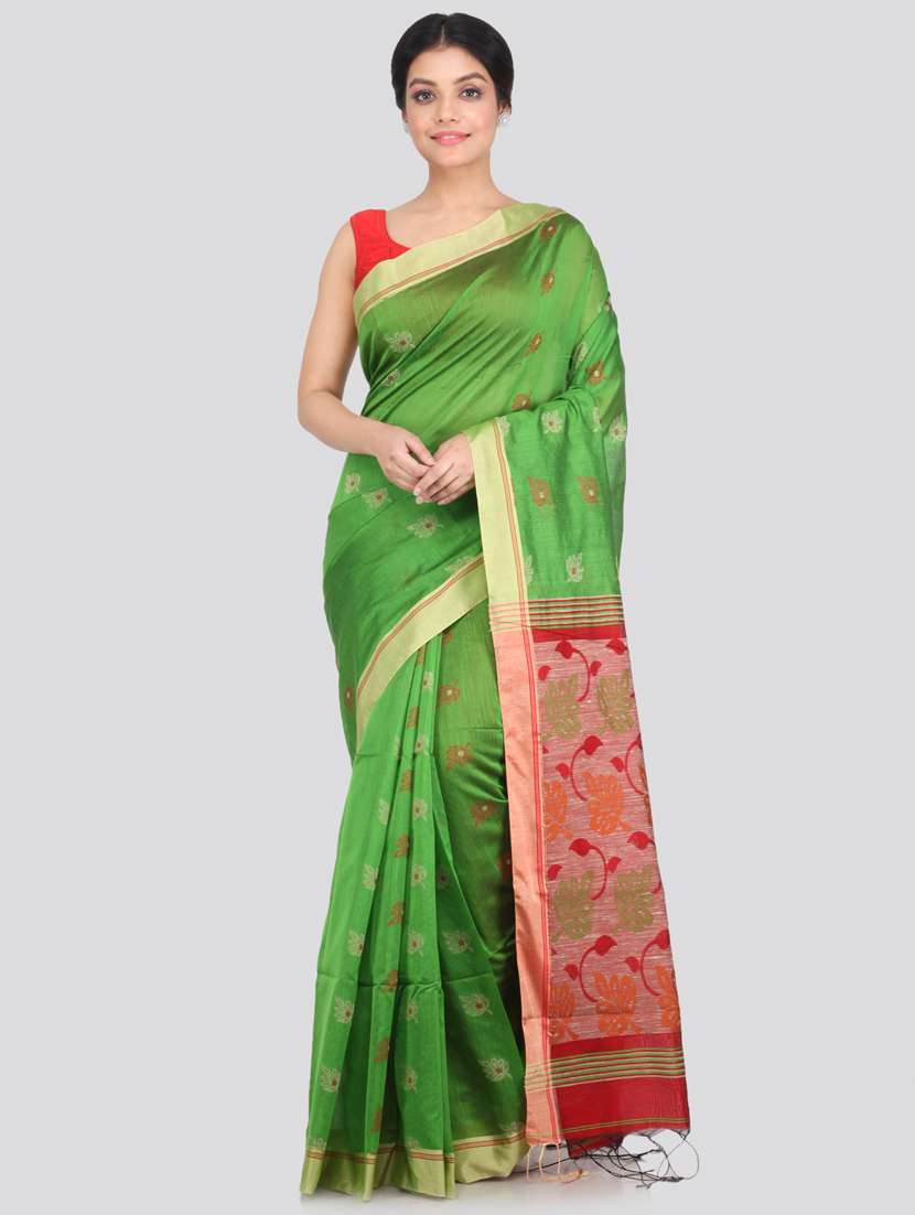 green cotton silk handloom saree - 18384539 - Very Small Image - 1