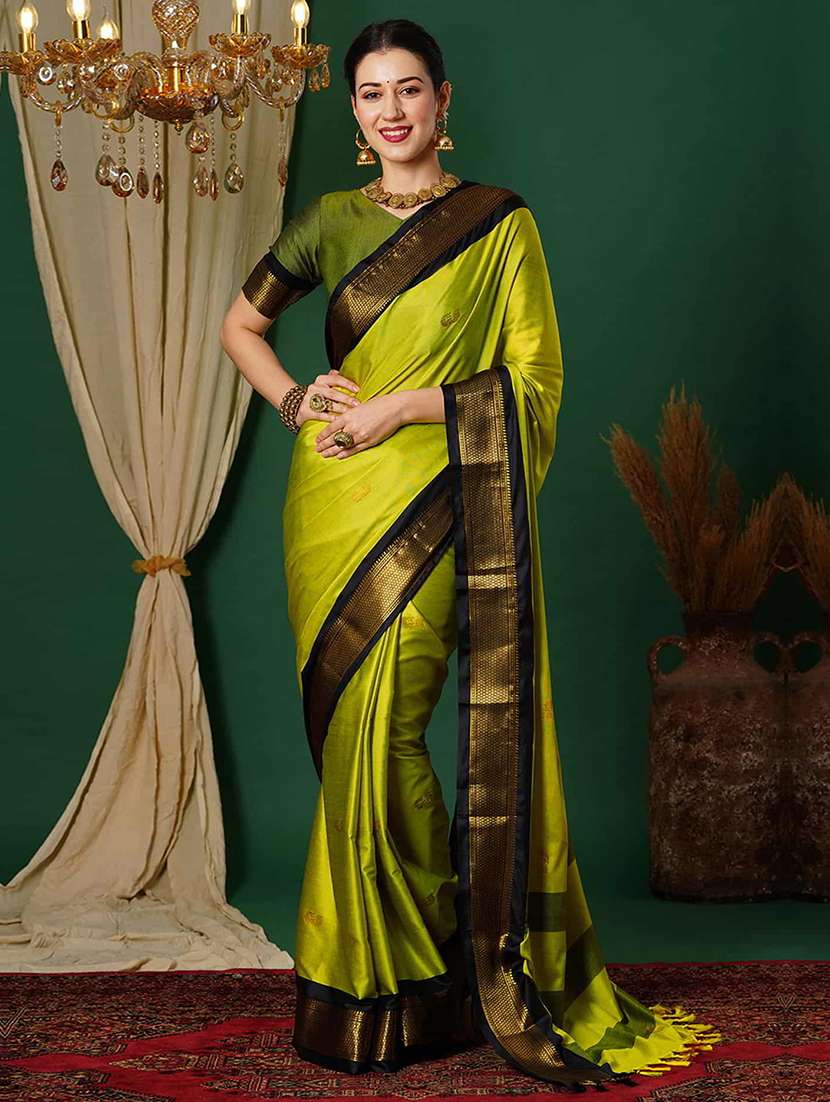 - » women lime self design zari bordered saree