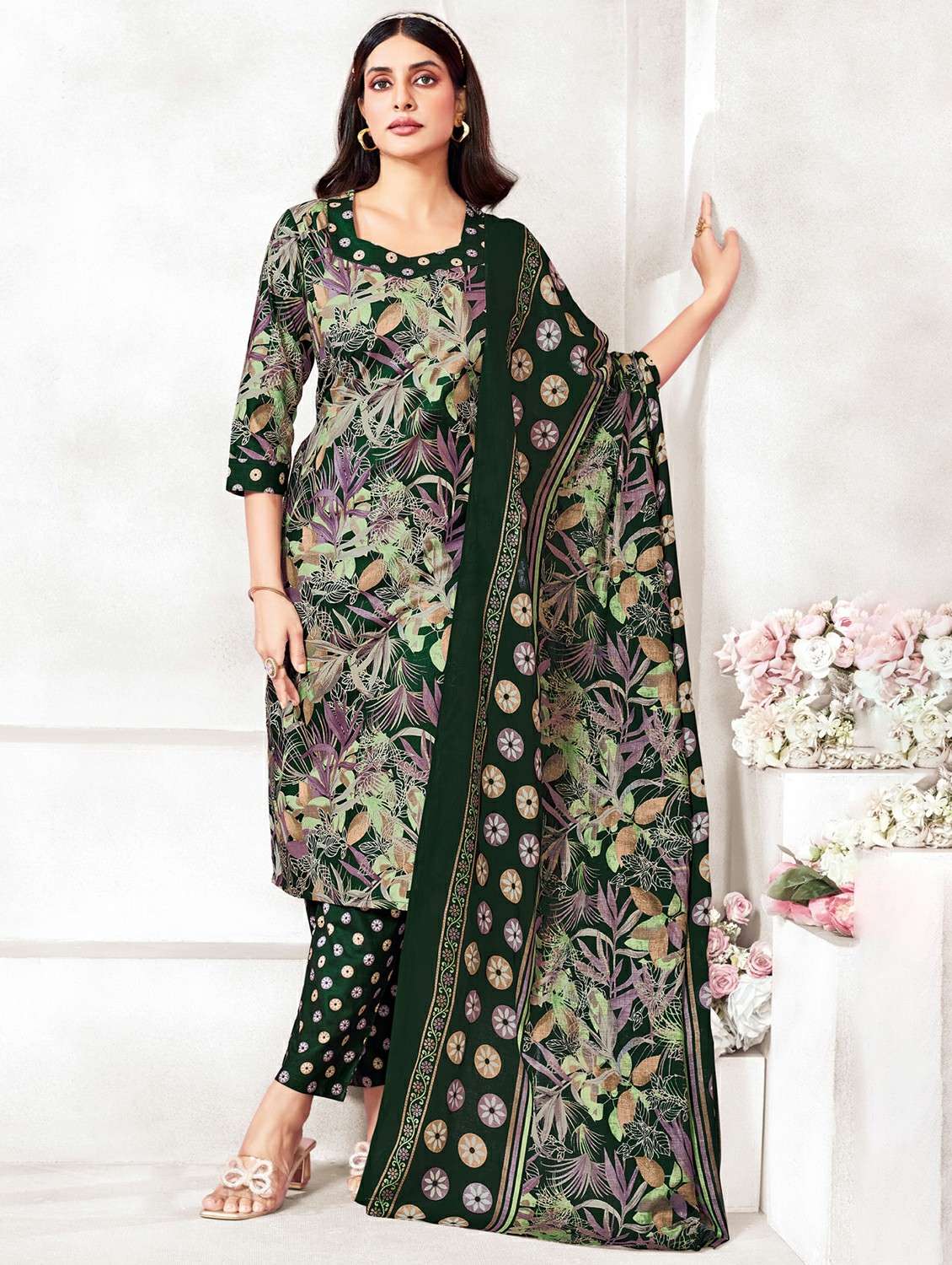- Find gorgeous sets of ethnic wears in trending designs in green colors suitable for casual wear of occasions.