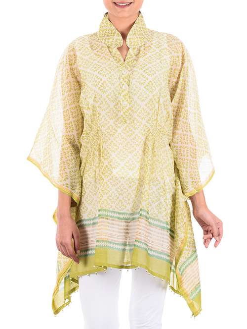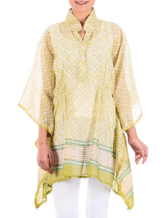 lime collared cotton printed tunic