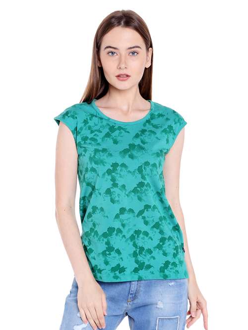 green printed cotton regular tee