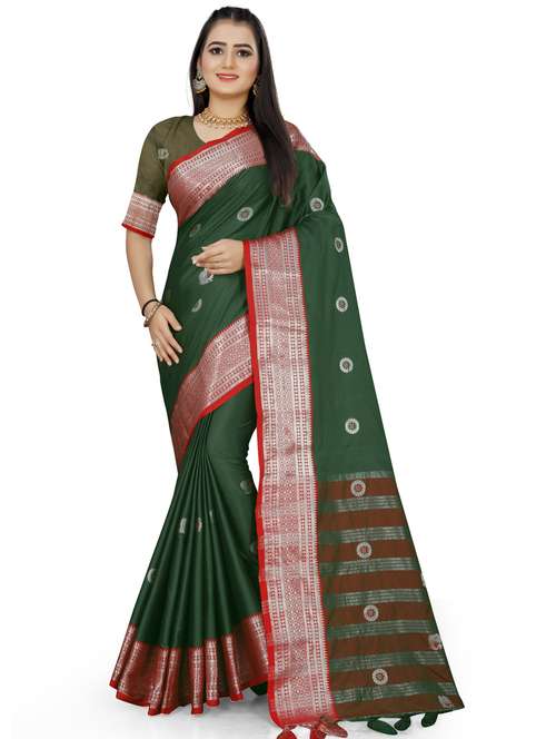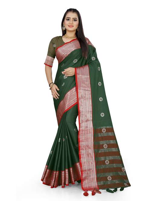 women's self design dark green colored saree with blouse - 19532893 -  Standard Image - 1 women's self design dark green colored saree with blouse - 19532893 -  Zoom Image - 1
