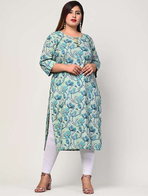 - Grab this beautiful kurta made up of cotton fabric featuring key hole neck designs.