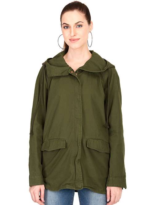 - » hooded neck concealed placket jacket