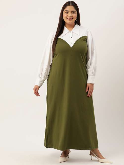 olive cotton plus dress - 20302737 - Very Small Image - 1