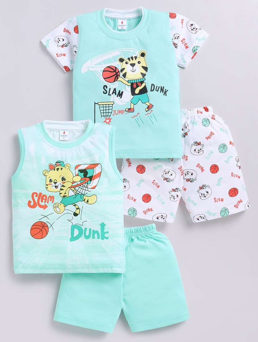 set of 2 kids sea green cotton shorts set