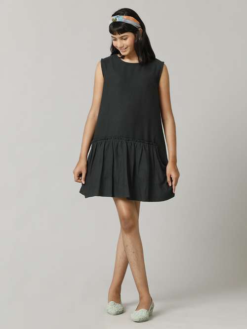 Girls Cotton Twill Round Neck Sleeveless Regular Dress