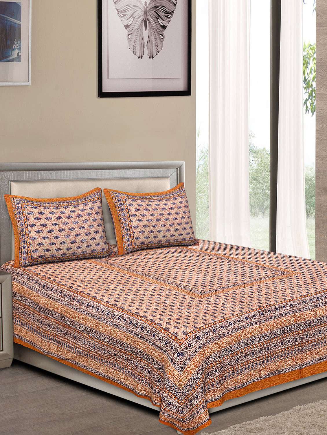 jaipuri traditional double bedsheet with 2 pillow covers