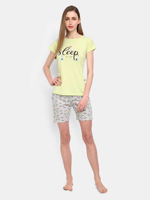 round neck printed nightwear shorts set