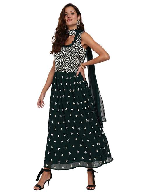 green embroidered fit & flare gown - 19350851 - Very Small Image - 1