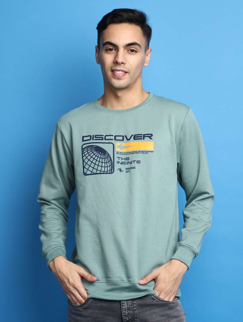- » men front print crew neck sweatshirt
