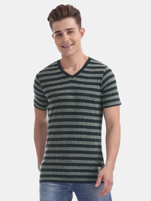 - » v neck striped printed t-shirt