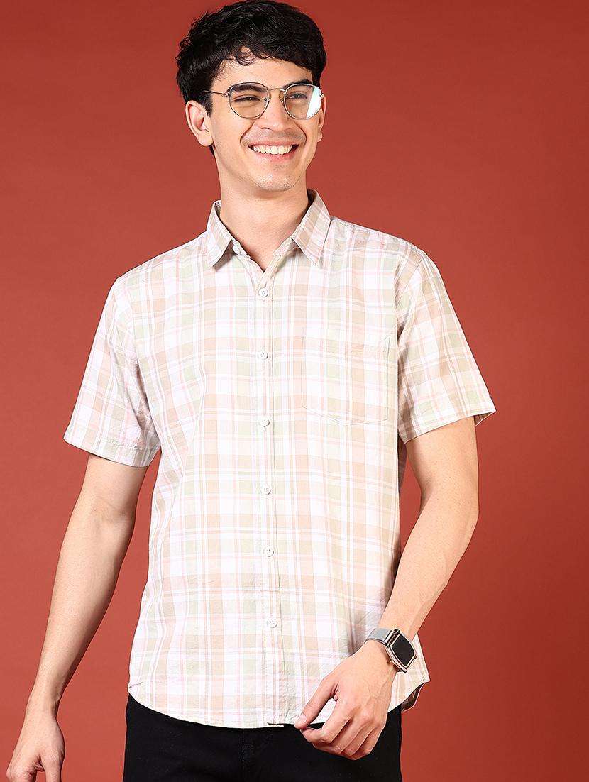 men checkered short sleeve regular fit casual shirt