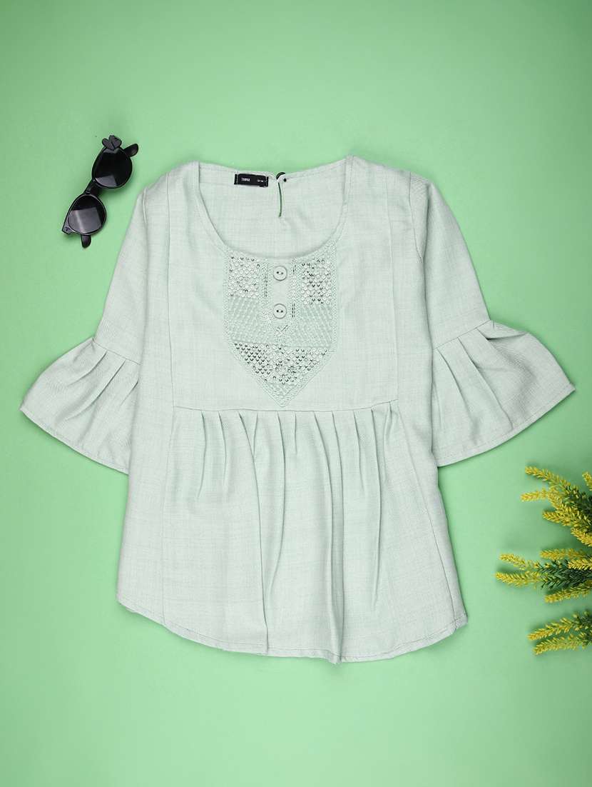 - » girls solid with work bell quarter sleeve top